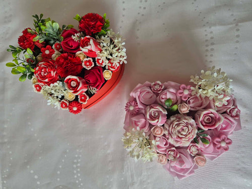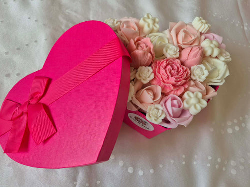 Boîte cœur fondants parfumés et fleurs artificielles